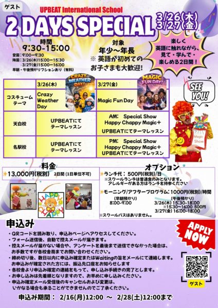 一般参加歓迎❗️アップビートインターナショナルスクールが贈る特別な2日間‼️🤡