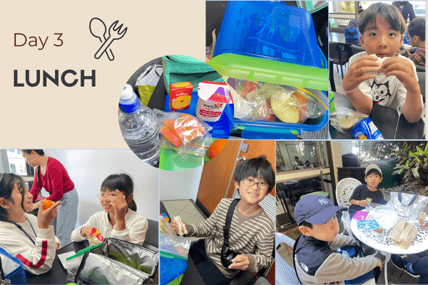 オーストラリアのホストママが作ってくれるランチは結構ボリューミィ。ヨーグルトも日本の2倍サイズがボンッと入ります。ランチBoxも大きい(写真参考に)!ランチ休憩は各国の友達が思い思いの場所で好きにご飯を頂きます。ランチには教師は介入しないのは定番。子ども達は自由に食べて自由に交流します。でもね、子ども達はちゃんと時間を守って片付け、授業開始前にクラスへ戻ることができていますよ!素晴らしい。